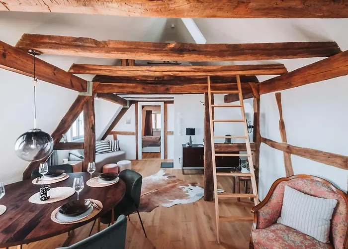 O apartamento Altes Pfarrhaus - Galerie Apartamento está situado perto de Zehnthof und Papiermuseum in Gleisweiler e dispõe de terraço e quartos com WiFi em toda a propriedade. Burg Neuscharfeneck fica a 6 km deste apartamento.